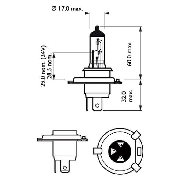 Spuldze priekšējā 12V PHILIPS H4 100/90W 12V P43t