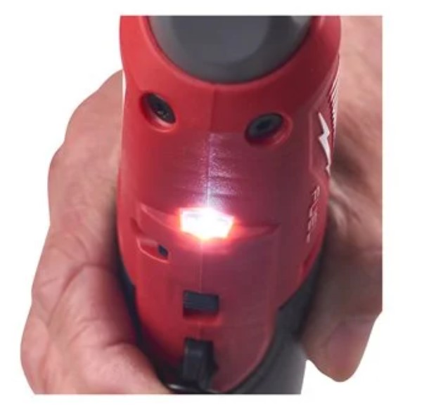 LED apgaismojums izgaismo darba zonu, bet iebūvētā akumulatora uzlādes mērierīce ataino atlikušo darbības laiku