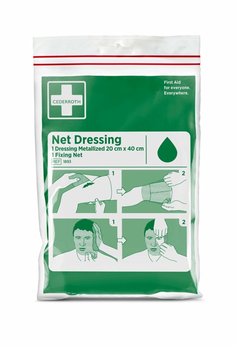 Liela izmēra pārsējs ar fiksējošu elastīgo tīkliņu, kas palīdz droši noturēt pārsēju vietā bez papildu stiprinājumiem.