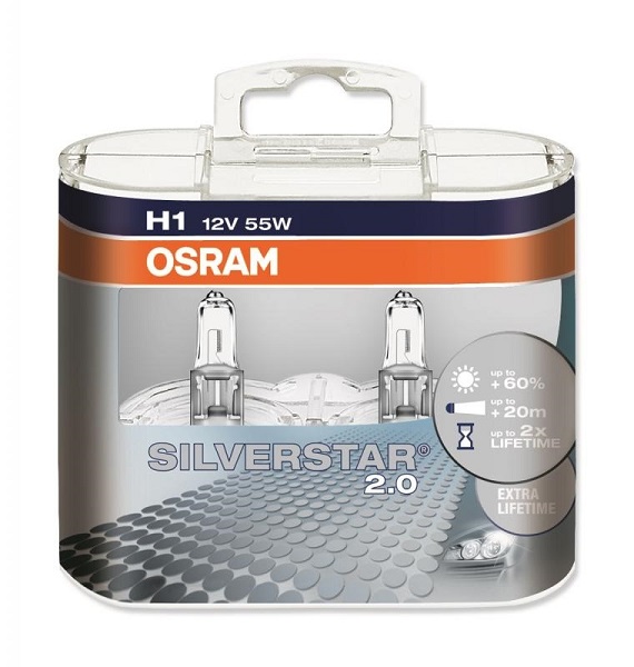 Kvēlspuldze H1 12V OSRAM Silverstar 2.0 55W P14.5s BLI2