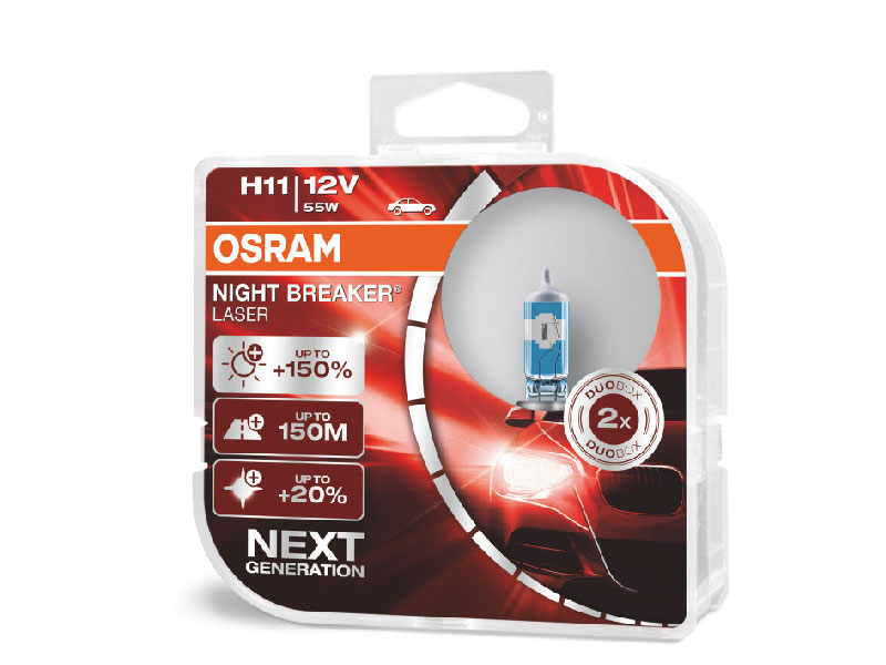 Kvēlspuldze H11 12V OSRAM Night Breaker Laser +150% 55W PGJ19-2 HCB2