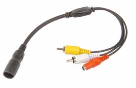Adaptera kabelis, kas savieno MXN kameru un jebkuru monitoru ar RCA ievadi. 4 kontaktligzdas, RCA kontaktdakšai A / V 12V līdzstrāvas ievade