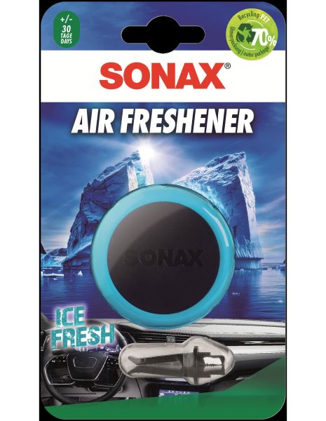 SONAX gaisa atsvaidzinātājs piedāvā automašīnai patīkamu un ilgstošu smaržu. To ērti var piestiprināt pie automašīnas paneļa gaisa restēm ar komplektā iekļauto klipsi. Produktā izmantotas augstas kvalitātes smaržu eļļas, nodrošinot aromātu, kas saglabājas vairāk nekā 30 dienas.