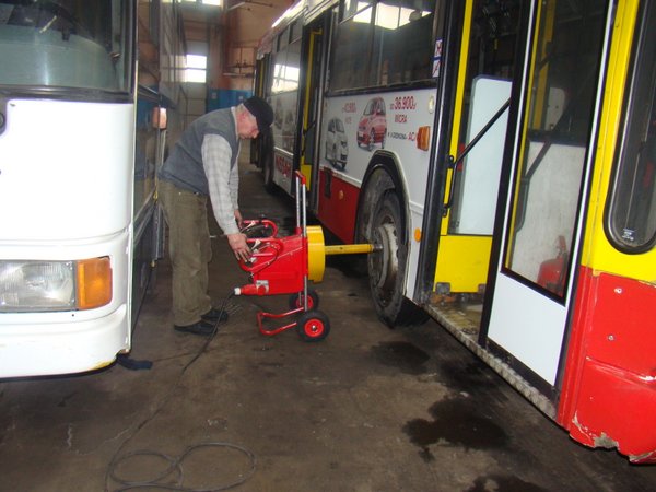TURBO MOBIL modelis Paredzēts transportlīdzekļu riteņu apkalpošanai ierobežotā teritorijā, piemēram, remonta zālēs un mobilajos dienestos ar mehānisko spēku 2500 Nm TEHNISKIE DATI: Garums: 1000 mm Platums: 580 mm Augstums: 1040 mm Minimālais uzstādīšanas augstums: 310 mm Maksimālais paceltais augstums: 795 mm Barošana 3 x 230/400 V, 50 Hz Vienmērīga augstuma regulēšana Dzinēja jauda 1,5 kW Maksimālais trieciena spēks 2500 Nm Minimālais trieciena spēks 600 Nm Vārpstas gals 1" Darba ātrums 410 apgr./min. Pamatkrāsa sarkana Pašsvars 65 kg Pneimatisko riteņu diametrs 190