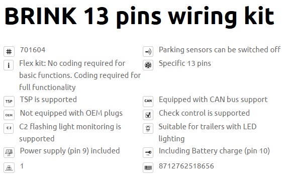 Sakabes āķa vadu kompl. SKODA, VW, AUDI - 13PIN